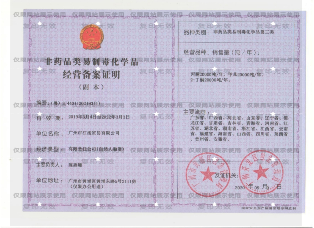 非药品类易制毒化学品经营备案证明