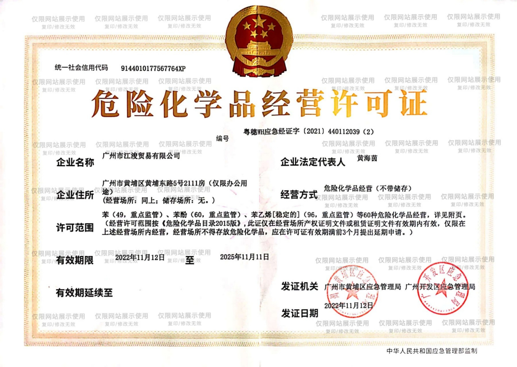 危险化学品经营许可证